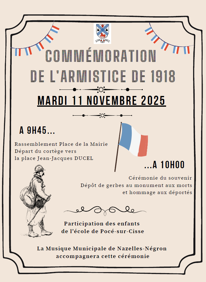 Départ à 9h45 de la place de la Mairie.Dépôt de gerbe au monument aux morts suivi d’un verre de l’amitié.